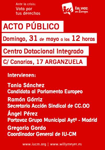 Secciones: Convocatorias - Documentos militante IU/ PCETítulo: Acto público IU - 31/5/09 en Centro Dotacional Integrado de Arganzuela a las 12h.- Enlace 1 - Enlace 2 - Enlace 3 Texto del artículo: