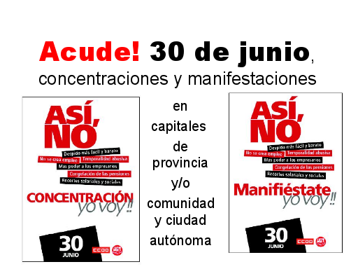 Convocadas por CCOO y UGT en todo el Estado, el 30 junio hay manifestaciones y concentraciones