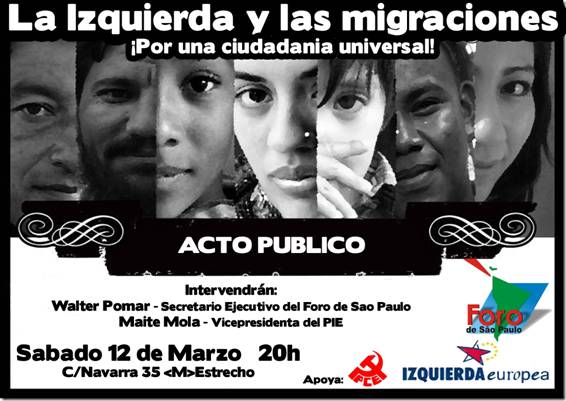 Secciones: Convocatorias - Mundo InsurgenteTítulo: 12/3/11 Acto público La izquierda y las migraciones-¡Por una ciudadanía universal!- Enlace 1 - Enlace 2 - Enlace 3 - Enlace 4 - Enlace 5 Texto del artículo: