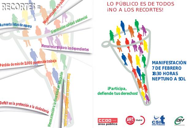 Secciones: Convocatorias - CC.OO. - Movimiento Obrero/Mundo del TrabajoTítulo: 7/2/12 Manifestación LO PÚBLICO ES DE TODOS: NO A LOS RECORTES- Enlace 1 - Enlace 2 Texto del artículo: