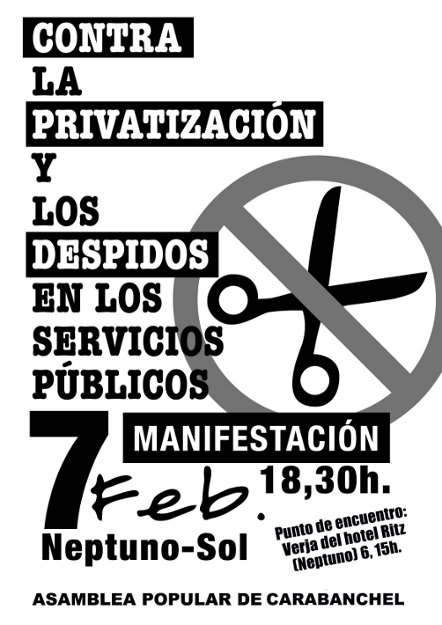 Manifestación: Martes, 7 de febrero de 2012 a las 18:30 h de Neptuno a Sol