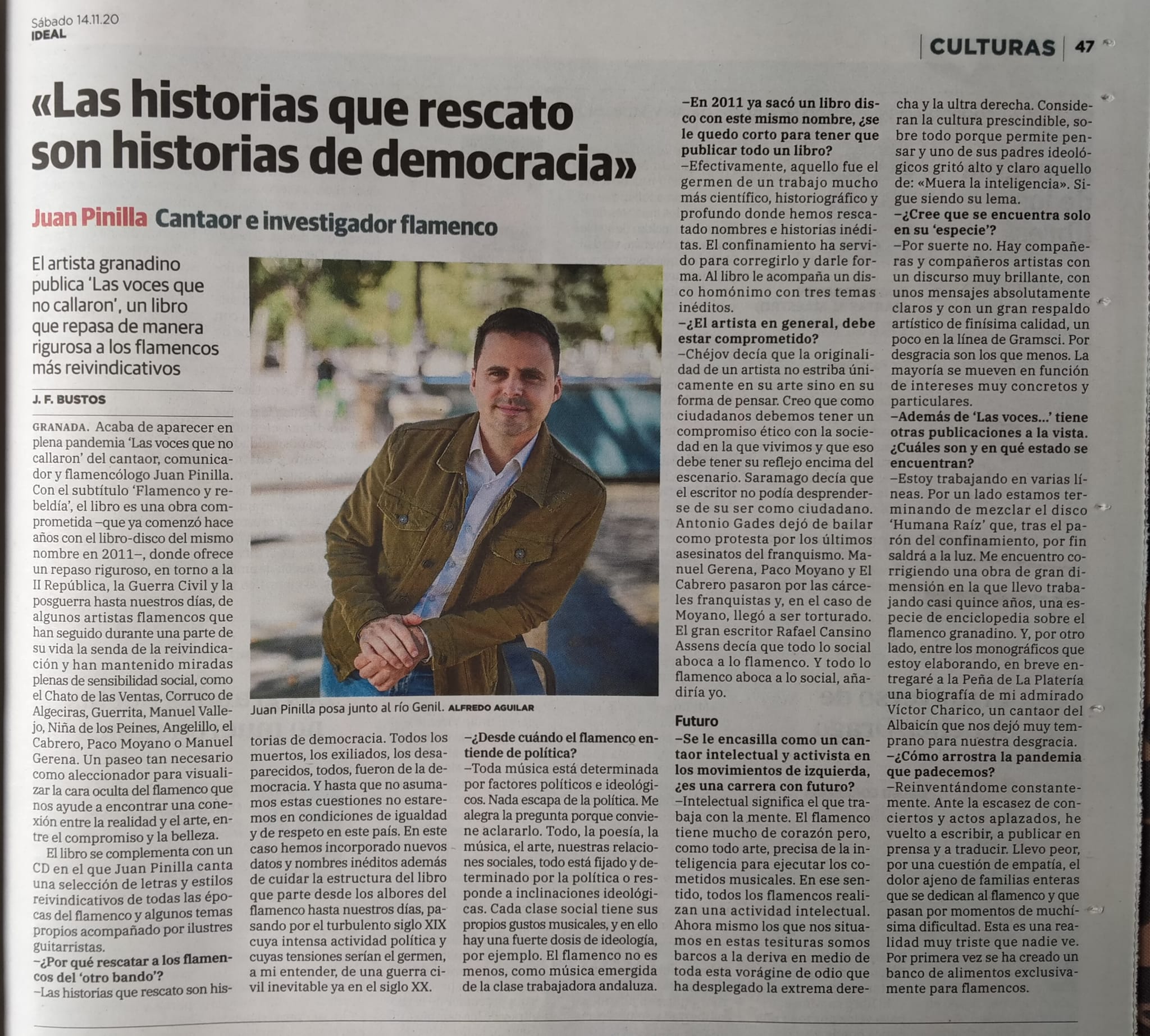 "«Las historias que rescato son historias de democracia» El artista granadino publica "Las voces que no callaron", un libro que repasa de manera rigurosa a los flamencos más reivindicativos Acaba de aparecer en plena pandemia.