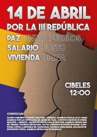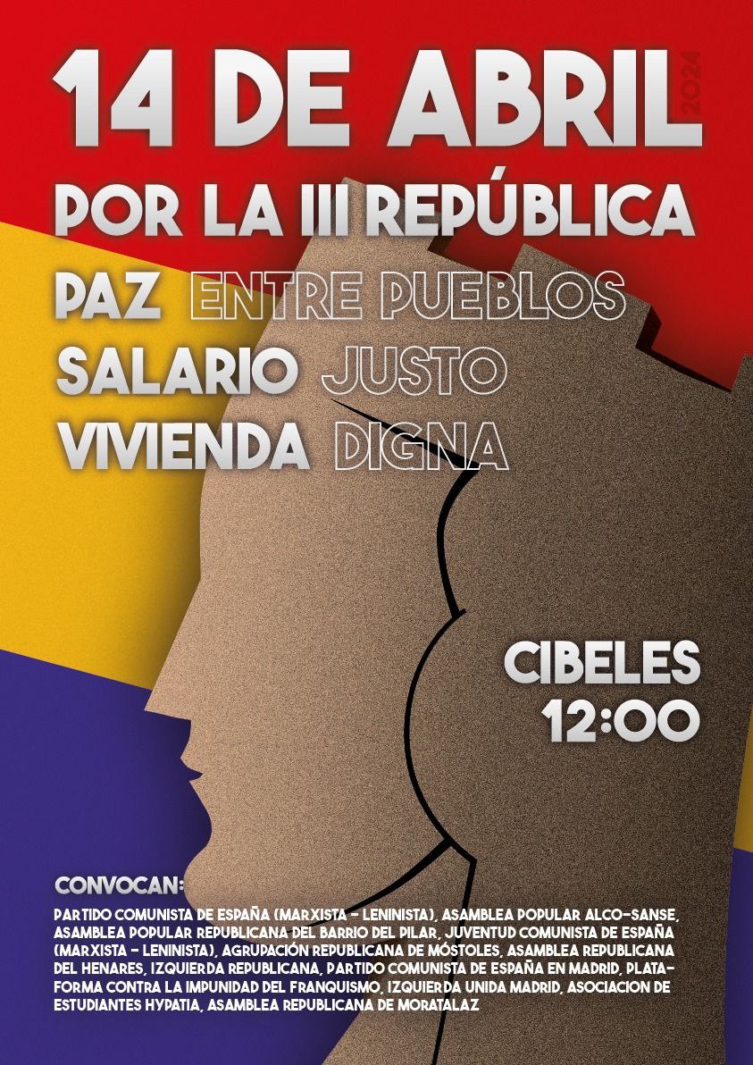 Secciones: Convocatorias - República Española, La Tercera y Socialista - 15M, SUMAR, mareas, unidad popular, PAHTítulo: Domingo 14 de Abril mani por la República en Madrid y otros actos en localidades madrileñas- Enlace 1 - Enlace 2 - Enlace 3 - Enlace 4 Texto del artículo: