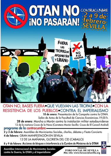 ENLACE 6 a imagen con el cartel de la convocatoria previa en Sevilla, febrero, cumbre de la OTAN
