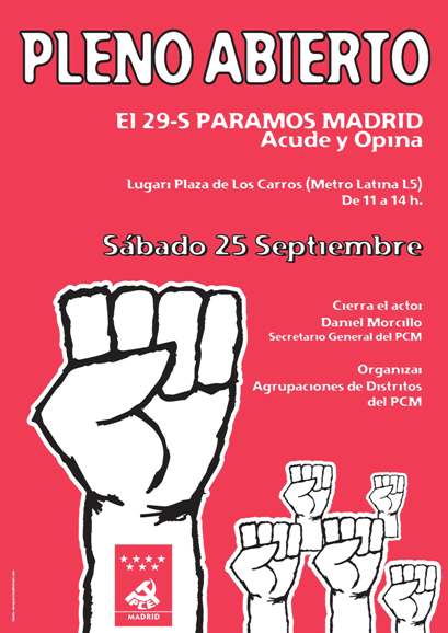 Secciones: Convocatorias - Documentos militante IU/ PCE - Huelga GeneralTítulo: 25/9 Pleno abierto sobre la HUELGA GENERAL en Madrid, - Enlace 1 - Enlace 2 - Enlace 3 Texto del artículo: