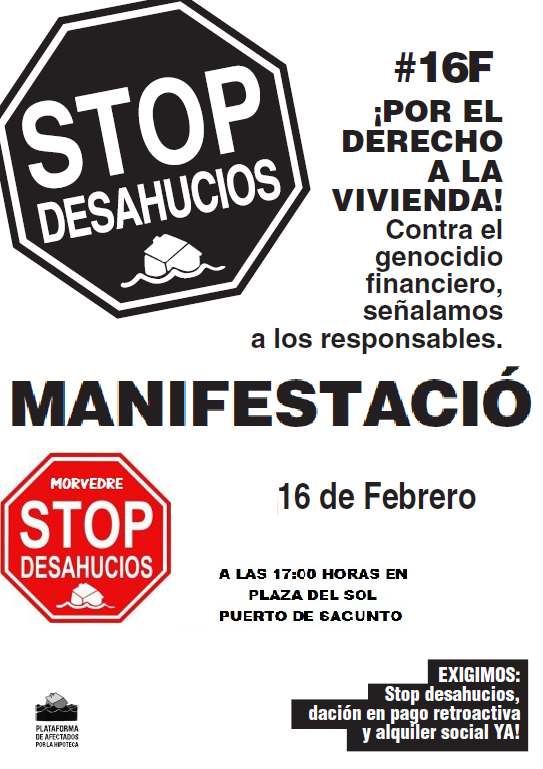 Por el derecho a la vivienda. Contra el genocidio financiero, señalamos a los responsables y exigimos dación en pago retroactiva, alquiler social y stop desahucios ya!